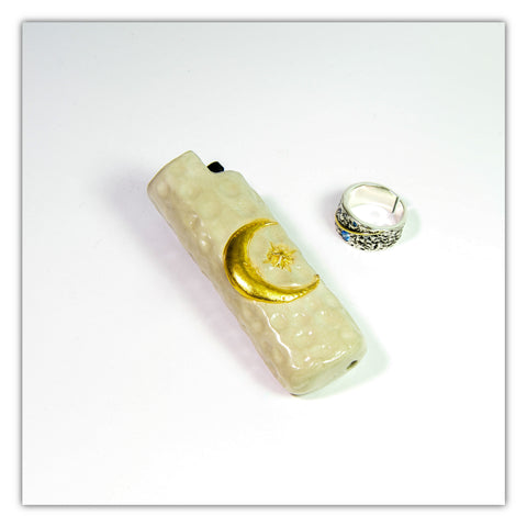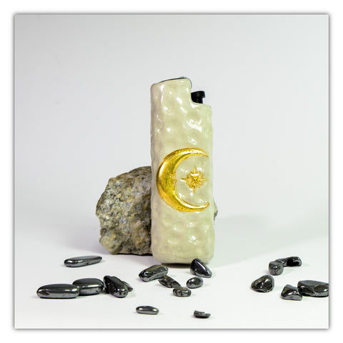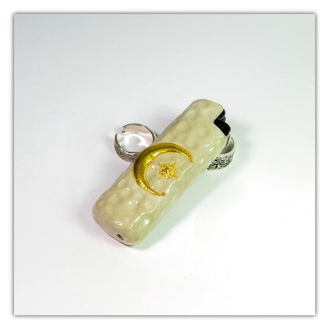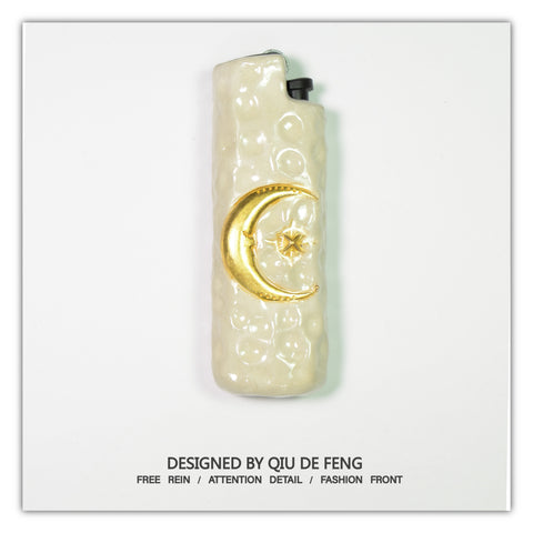 Bic J3 / Cricket Feuerzeugetui handgefertigt mit dem Mond und den Sternen