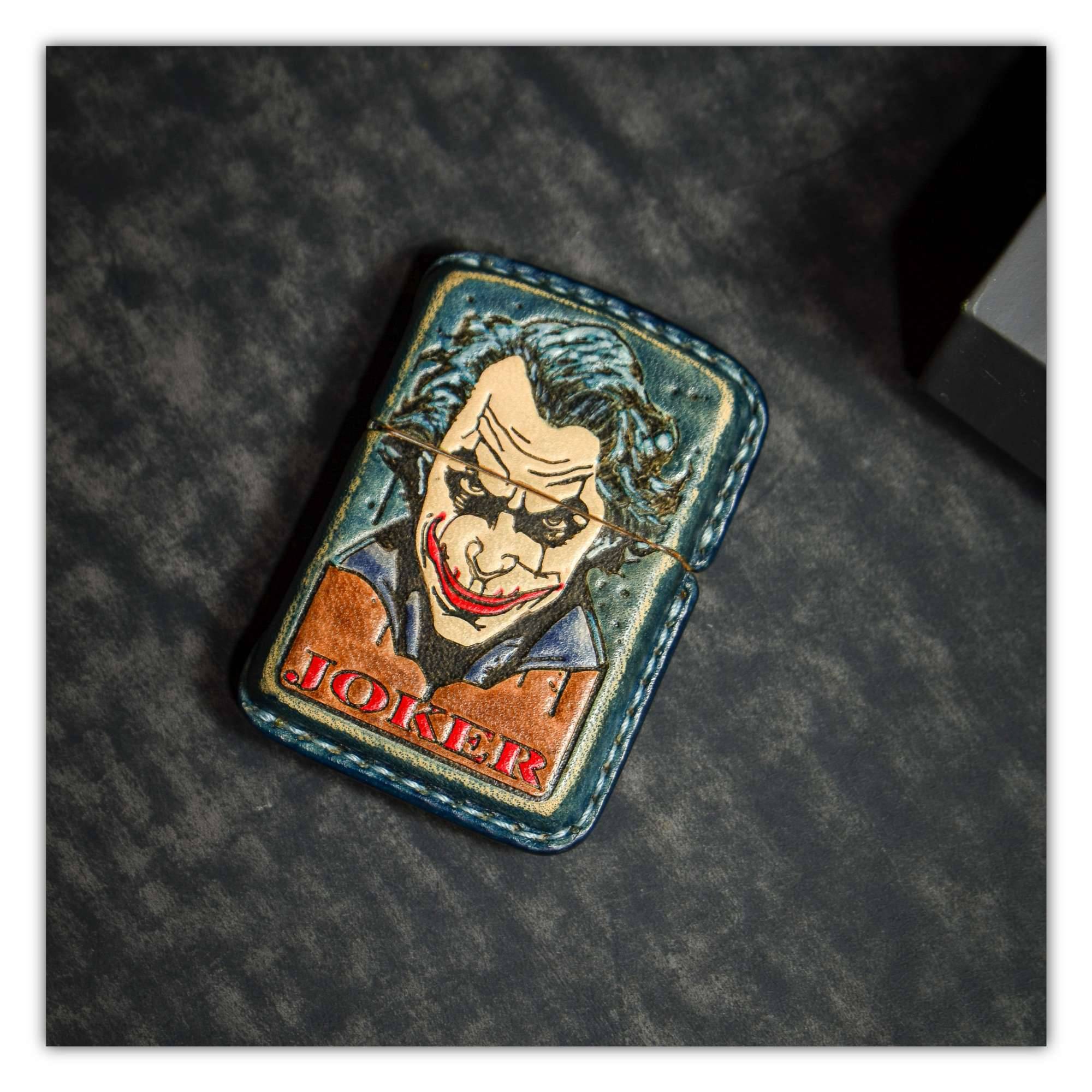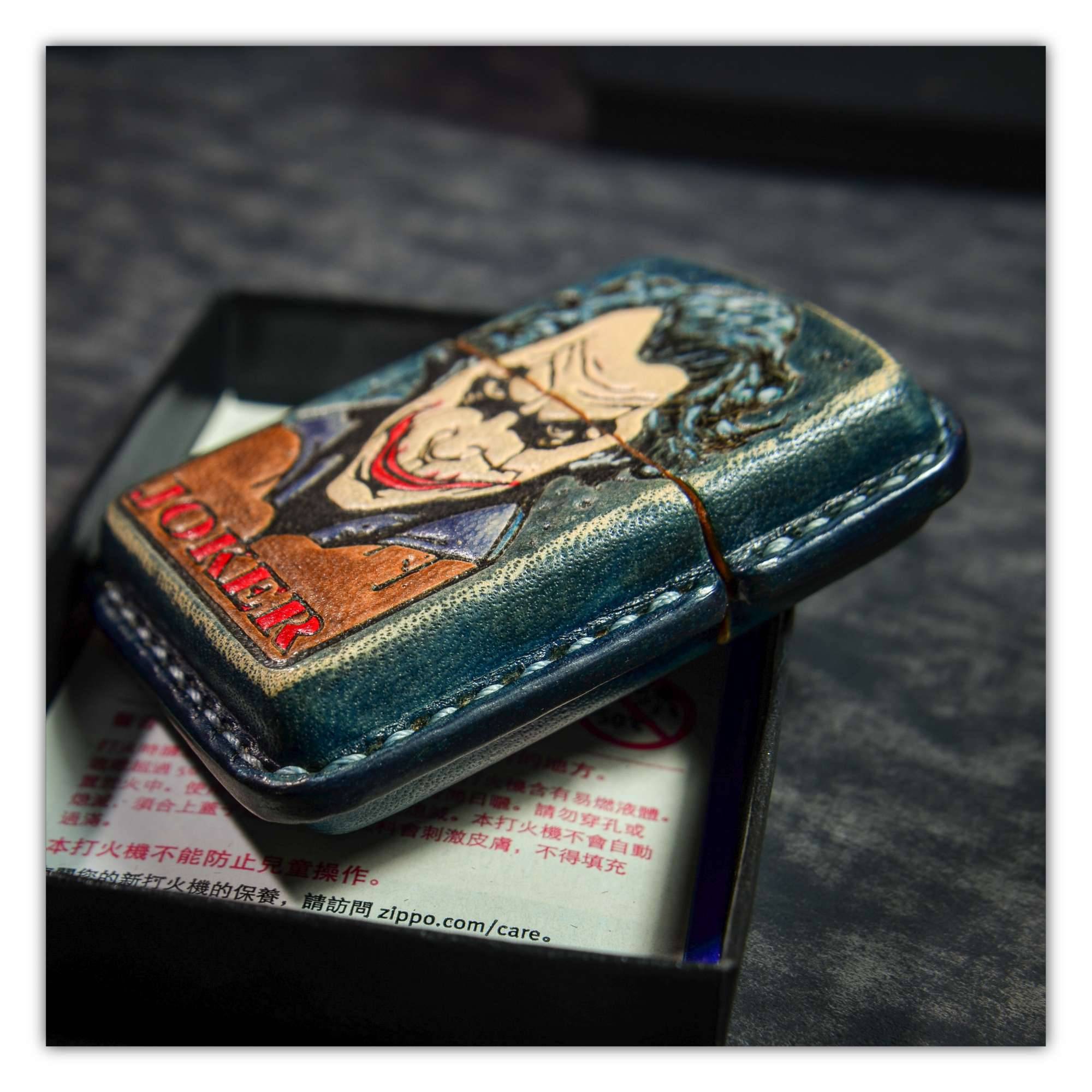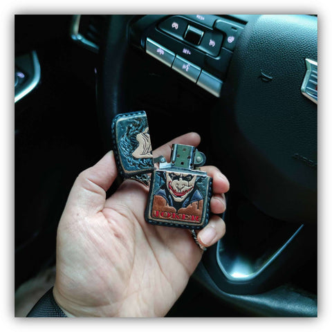 Handmade Zippo leather case Original design cowhide production Smiling joker